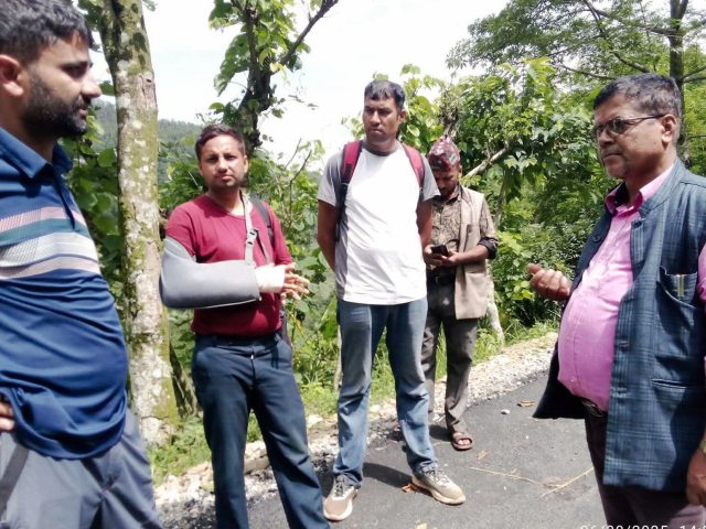 पिच गरेको एक महिनामै सडक भत्कियो, उपाध्यक्ष र वडाध्यक्षको नेतृत्वमा अनुगमन