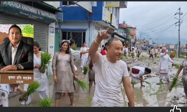 काठमाडौं, असार १६ ! धान दिवसका अवसरमा तारकेश्वर नगरपालिका–१० स्थित साङ्ले खोलामा स्थानीयबासीले अनौठो तरिकाले विरोध प्रदर्शन गरेका छन्। नगरप्रमुख कृष्णहरि महर्जनको घर (सुमार्ग हार्डवेयर अगाडि) रहेको करिडोर सडक निर्माण अलपत्र परेपछि स्थानीयवासी र शुभकामना योग साधना केन्द्रका योगीहरूले उक्त स्थानमै सामूहिक रोपाइँ गरेका हुन्।